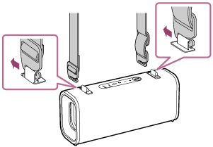 攜帶音箱時,請將肩帶斜挎在身上。否則,您可能會不小心掉落揚聲器。