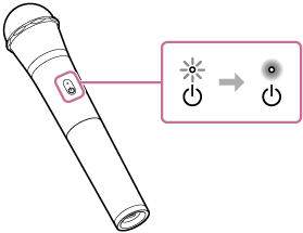 Prima e mantenha premido o botão de alimentação do microfone e do recetor em simultâneo durante cerca de 5 segundos.
