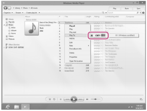 Домашня аудіосистема також може автоматично перемкнутися в режим NETWORK без використання пульта дистанційного керування шляхом відтворення музики за допомогою функції [Play To] після запуску програми Windows Media Player.