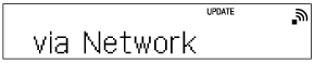 Якщо домашня аудіосистема підключена до Інтернету через дротову мережу або мережу Wi-Fi, у разі виявлення доступного оновлення програмного забезпечення на дисплеї відображається [UPDATE].