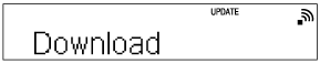 Повідомлення [Download] і [Update] відображатимуться безперервно, а потім, коли почнеться оновлення, індикатор режиму очікування засвітиться жовтогарячим. Не використовуйте домашню аудіосистему або пульт дистанційного керування під час оновлення.