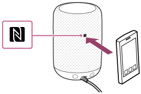 Hold det NFC-kompatible udstyr så det rører N-mærkesymbolet på højttaleren og bevæg langsomt udstyret frem og tilbage og rundt.