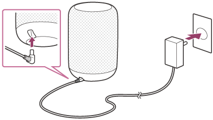 Sätt i ena änden på nätadaptern i DC IN-kontakten på undersidan av högtalaren.