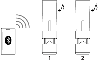 Utilizzando la funzione di aggiunta diffusore, è possibile connettere un singolo dispositivo BLUETOOTH a due diffusori LSPX-S1 contemporaneamente. Quando si usa la funzione di aggiunta diffusore, un diffusore agisce come “unità principale”, mentre l’altro agisce come “unità satellite”. Selezionare uno dei seguenti due metodi di riproduzione.