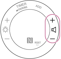 Defina um volume moderado no dispositivo ligado e, em seguida, utilize os botões