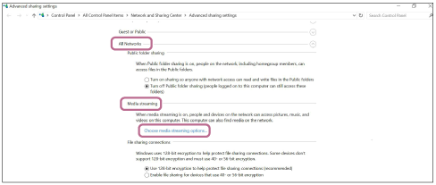 Valitse [Choose media streaming options...] kohdasta [Media streaming], joka on kohdassa [All Networks].