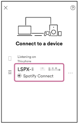 Valitse [LSPX-S2] ja kuuntele musiikkia kaiuttimesta.