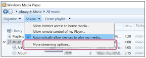Selectați [Stream], apoi verificați dacă [Automatically allow devices to play my media...] a fost bifat.