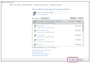 Dacă nu sunt permise toate dispozitivele, selectați [Allow All], iar apoi va apărea ecranul [Allow All Media Devices]. Apoi, selectați [Automatically allow all computers and media devices.] pentru a permite utilizarea tuturor dispozitivelor.