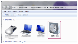 右击[Devices]中的[LSPX-S2],然后从出现的菜单中选择[Sound settings]。