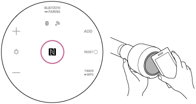 通过用智能手机等NFC兼容设备轻触扬声器,扬声器可自动开启,随即进行配对并建立BLUETOOTH连接。