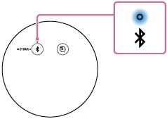 (BLUETOOTH)-indikatorn blinkar långsamt. Men när högtalaren inte har någon information om koppling, som till exempel vid fabriksstandardinställningarna, kopplas kopplingsläget inte ur. Om kopplingsläget kopplas ur innan processen avslutas, upprepa från steg