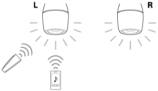 - Speaker Add機能を使用中は、R側の電球スピーカーはリモコン操作による音量や明るさ、色の調整を受け付けません。必ずL側の電球スピーカーに向けて操作してください。2台の電球スピーカーの設定が同期します。R側の電球スピーカーを単独で使用したいときは、Speaker Add機能を解除してから行ってください。
