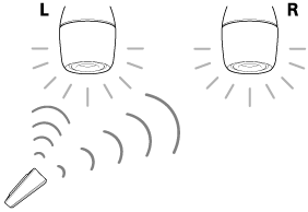 - Speaker Add機能を使用中は、R側の電球スピーカーはリモコン操作による音量や明るさ、色の調整を受け付けません。必ずL側の電球スピーカーに向けて操作してください。2台の電球スピーカーの設定が同期します。R側の電球スピーカーを単独で使用したいときは、Speaker Add機能を解除してから行ってください。