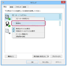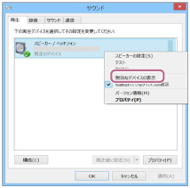 - [LST-SE300ステレオ]が表示されない場合は、[サウンド]画面で右クリックし、表示されたメニュー から[無効なデバイスの表示]を選択して、次の手順3へ進んでください。