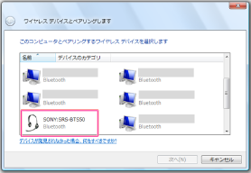 [SONY:SRS-BTS50]を選び[次へ]をクリックする。