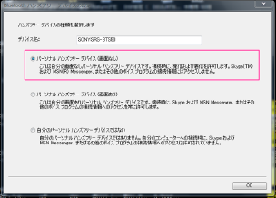 [パーソナル ハンズフリー デバイス(画面なし)]を選び[OK]をクリックする。