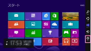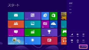 画面の右上隅にマウスポインターを合わせて(タッチパネルの場合は画面の右端からスワイプして)、表示されたチャームから[設定]を選択する。