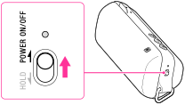 Skjut och håll POWER/HOLD-knappen till POWER ON/OFF tills strömindikatorn tänds och lyser grönt.