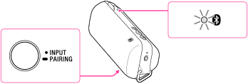 (BLUETOOTH)-indikatorn (blå) är släckt ska du trycka på INPUT/PAIRING-knapp en gång för att få