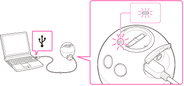 If the system is not used for a long time, the BATT/CHG indicator (orange) may not light up when you connect the micro-USB cable to charge the system. In this case, do not disconnect the micro-USB cable from the system and wait until the BATT/CHG indicator (orange) lights up.