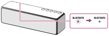 Når du aktiverer BLUETOOTH-tilstanden, forsøger højttaleren at oprette en BLUETOOTH-forbindelse til den sidst tilsluttede BLUETOOTH-enhed. Hvis enheden er tæt på, oprettes BLUETOOTH-forbindelsen automatisk, og indikatoren BLUETOOTH lyser konstant. I dette tilfælde deaktiveres BLUETOOTH-funktionen på BLUETOOTH-enheden, eller BLUETOOTH-enheden slukkes.