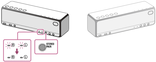 PAIRING para ligar a coluna e, em seguida, carregue sem soltar no botão STEREO PAIR até ouvir um sinal sonoro que indica o fim da função Speaker Add. Execute a mesma operação na outra coluna para terminar a função Speaker Add.