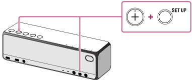 扬声器打开时,同时按住+(音量)按钮和SET UP按钮超过四秒。