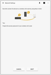 - 按照“Sony | Music Center”的画面说明连接Wi-Fi网络。