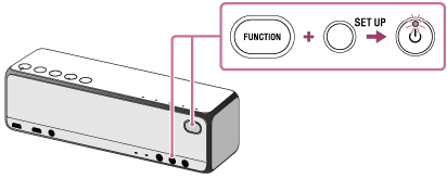 扬声器打开时,同时按住FUNCTION按钮和SET UP按钮直到