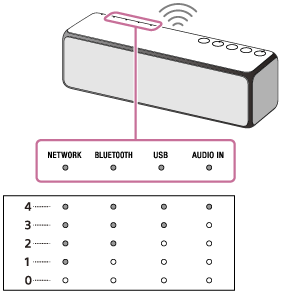 顶部面板上的功能指示灯(NETWORK、BLUETOOTH、USB、AUDIO IN)开始点亮。