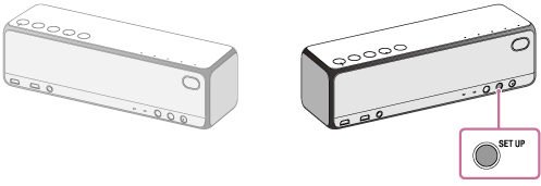 当使用无线立体声功能时,反复按扬声器背面的SET UP按钮。每按一下就会在R(右)和L(左)之间切换。此操作可用于任一扬声器。