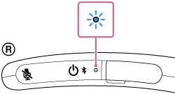 (BLUETOOTH) durante cerca de 5 segundos até ouvir a orientação por voz (BLUETOOTH pairing (Emparelhamento por BLUETOOTH)). Quando a coluna de pescoço está no modo de emparelhamento, o indicador começa a piscar duas vezes a azul.