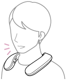 Kun puhelin soi tai puhelinkeskustelu on käynnissä, säädä äänenvoimakkuutta painamalla kaulalle asetettavan kaiuttimen -/+ (äänenvoimakkuus) ‑painikkeita tai käyttämällä BLUETOOTH-matkapuhelinta.