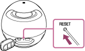 如果扬声器无法打开,或者即使打开也无法操作,请打开扬声器背面的保护盖,并用大头针等尖头物体按RESET按钮。扬声器将被重设并关闭。