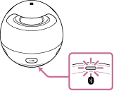 (BLUETOOTH)指示灯慢速闪烁。不过,当扬声器中未保存配对信息时(例如出厂时),则不会解除配对模式。如果在完成操作以前解除了配对模式,请从步骤2开始重复操作。 - 当配对的BLUETOOTH设备无法显示检测到的设备的列表或者没有显示屏时,可以通过让扬声器和BLUETOOTH设备均进入配对模式来进行设备配对。此时,如果在BLUETOOTH设备上将密钥设定为“0000”以外的数字,将无法和扬声器配对。