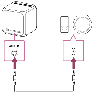- Аудио кабелі динамикпен қолданылған кезде BLUETOOTH байланысы арқылы музыка тыңдай алмайсыз. Қолданып болғаннан кейін кабельді динамиктің AUDIO IN ұясынан ажыратыңыз.