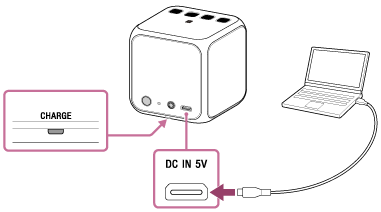 Зарядтау кезінде CHARGE индикаторы қызғылт сары түсте жанады. Зарядтаудың болжалды уақыты жалғанған компьютердің ток адаптерінің шығыс қуатының сыйымдылығына байланысты. Компьютердің шығыс қуаты туралы мәліметтер алу үшін компьютермен бірге берілген пайдалану бойынша нұсқаулықты қараңыз. Төмендегі уақыт сыртқы ортаның температурасына немесе қолдану шарттарына байланысты өзгеше болуы мүмкін.