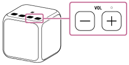 Trykk på knappene VOL (volum) –/+ på høyttaleren for å justere volumet.