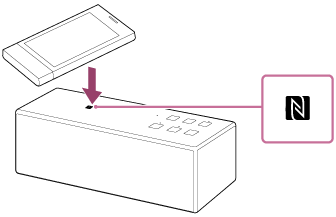 Door de luidspreker met een NFC-compatibel apparaat (bv. een smartphone of Walkman enz.) aan te raken, wordt de luidspreker automatisch ingeschakeld waarna de koppeling wordt uitgevoerd en de BLUETOOTH-verbinding tot stand wordt gebracht.