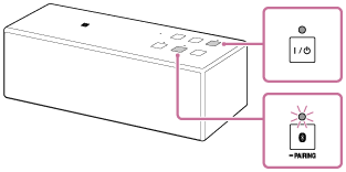 (BLUETOOTH)-indikatoren blinker sakte. Når paringsinformasjon derimot ikke er lagret i høyttaleren, som f.eks. fabrikkinnstillingene, frigjøres ikke paringsmodus. Hvis paringsmodusen frigjøres før prosessen er ferdig, gjentar du fra trinn 2.