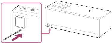 Starta högtalaren efter att du tryckt på RESET-knappen. Om den inte startar så kontaktar du närmaste Sony-återförsäljare.