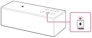 -indikatorn (BLUETOOTH) blinkar långsamt. Om ihopparningsinformationen, t.ex. fabriksinställningen, inte lagras i högtalaren, avbryts inte ihopparningsläget. Börja om från steg 2 om ihopparningsläget avbryts innan processen har genomförts.