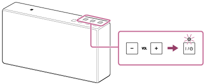 Når du trykker på knapperne VOL (lydstyrke) –/+, blinker indikatoren