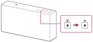 (BLUETOOTH) commence à clignoter rapidement en blanc et l’enceinte passe automatiquement en mode de pairage. - Quand vous appuyez sur la touche