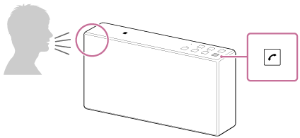 Quando efetua uma chamada, a reprodução é interrompida e ouve-se um sinal de marcação a partir da coluna. Quando o recetor recebe a chamada, fale para o microfone da coluna.