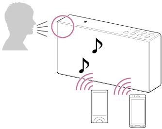 Uma vez que a coluna é compatível com a função de ligação multiponto, pode receber uma chamada noutro telemóvel com BLUETOOTH ligado à coluna, mesmo enquanto ouve música reproduzida a partir de um leitor de música com BLUETOOTH ligado à coluna.