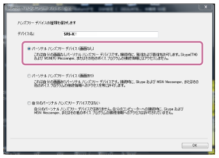 - [パーソナル ハンズフリー デバイス(画面なし)]を選び[OK]をクリックする。