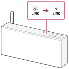 (tændt/standby) lyser grønt, derefter begynder indikatoren LINK at blinke. Første gang du konfigurerer højttalerindstillingerne efter købet eller efter højttalerinitialisering, skal du vente indtil indikatoren LINK slukkes (ca. et minut).