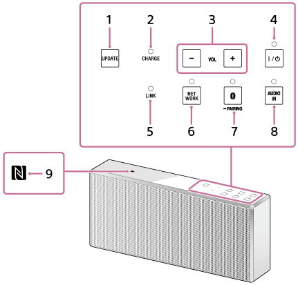 PAIRINGTryk på denne knap for at indstille højttaleren til tilstanden BLUETOOTH eller parring.